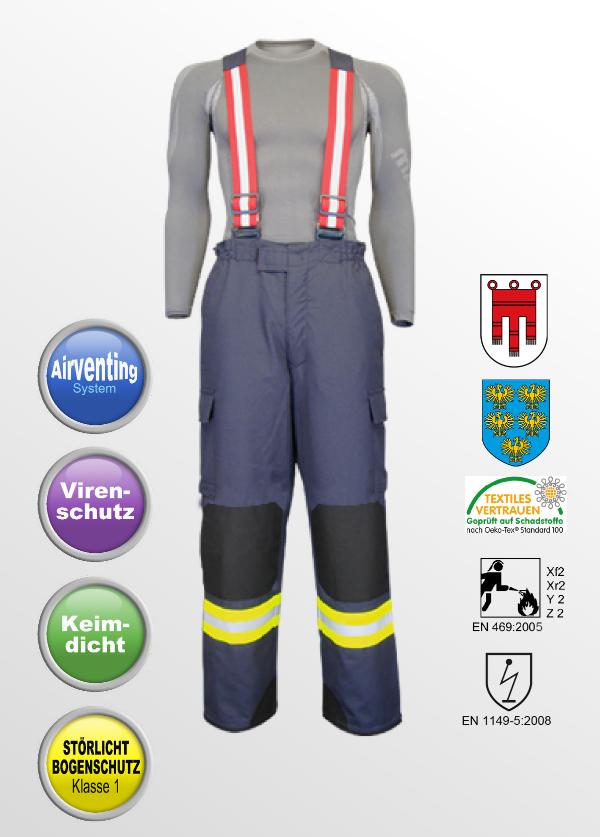 Die Schutzhose kann alleine, oder mit einer gefütterten Einsatzhose ADIS, gemeinsam getragen werden .
