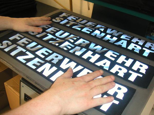 BESCHRIFTUNG schw. ARIAL BLACK, ABSCHNITT 7cm, darunter Feuerwehr 3cm