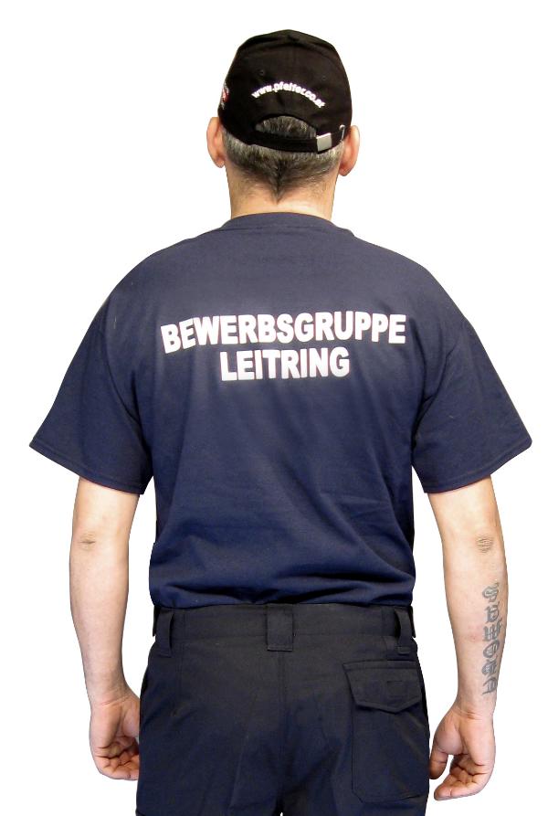 T-Shirt mit Beschriftung BEWERBSGRUPPE und ON 3,5 cm/Zeile am Rücken
