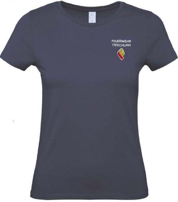 T-Shirt STMK Damen blau FEUERWEHR (rund) Korpsabzeichen darunter ORTSNAME gerade