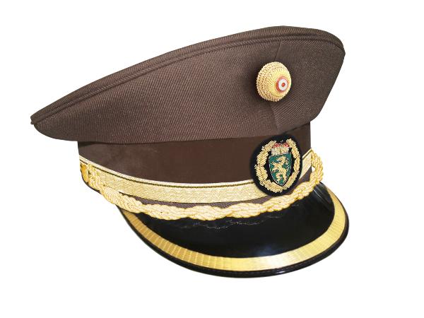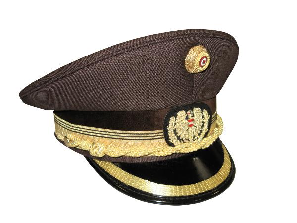 Tellerkappe braun mit Wappen STMK ABI, FA, FK, ABIdV, ABIdF, ABIdSTellerkappe Farbe braun, aus Kammgarn-Serge, gefüttert, mit Schweißleder, mit dunkelbraunem Samtumlaufstreifen mit jeweiligen Dienstgradabzeichen und schwarzem Schirm aus wasserfestem Material, Kappenschnur gold , Landeswappen mit Eichenkranz und gestickte Kokarde Gold.Tellerkappe braun mit Wappen STMK ABI, FA, FK, ABIdV, ABIdF, ABIdS |