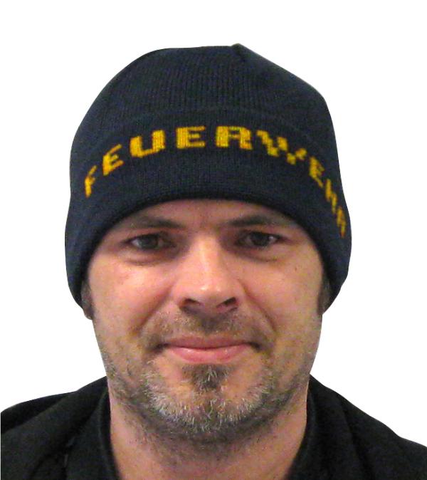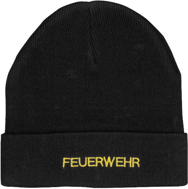 Strickhaube schwarz mit Stick FEUERWEHR in gelb