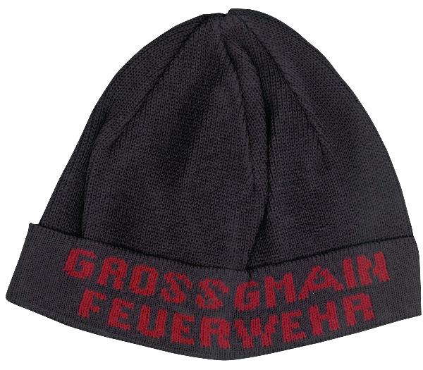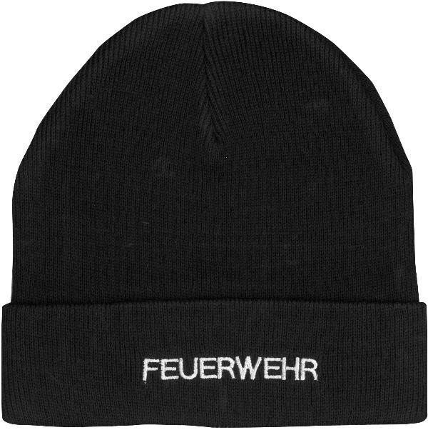 Strickhaube schwarz mit Stick FEUERWEHR in weiß