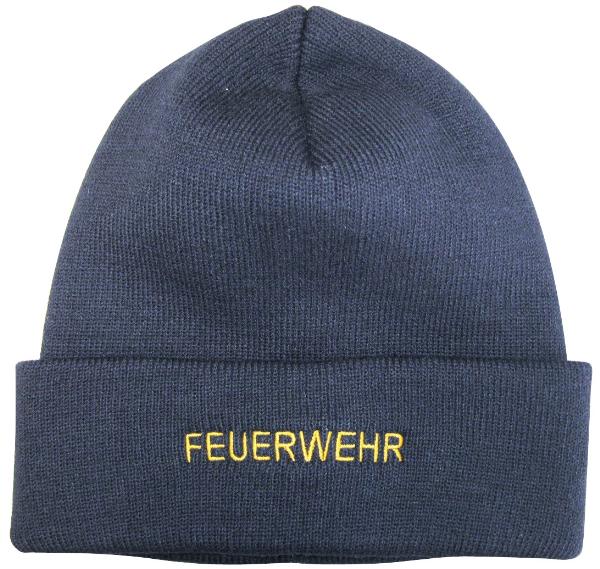 Strickhaube blau mit Stick FEUERWEHR in weiß