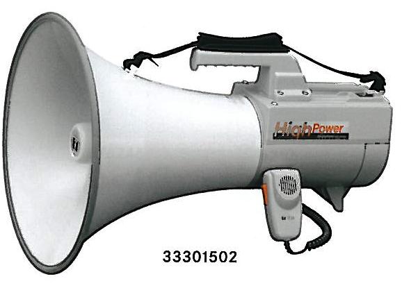 ein Leistungsstarkes Megafon Reichweite von ca. 800 - 1000 m.