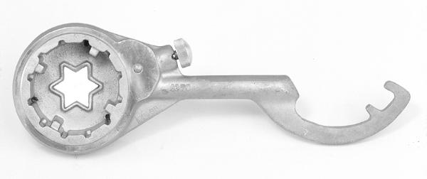 Aus Aluminium uns Sphäroguss mit umlenkbarer Ratsche. Öffnen und Schließen Betätigen der Verschlusskappen A + B + C Betätigen der Schlauchkupplung B + C Zerschlagen der Diebstahlsicherung