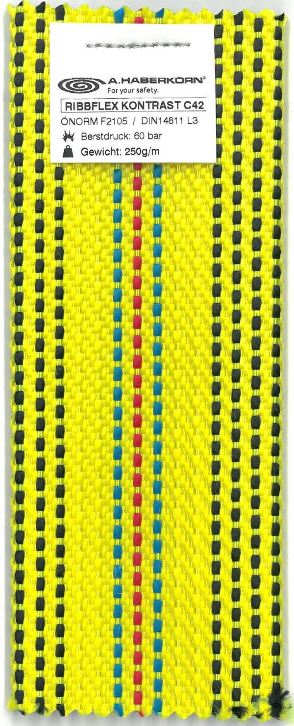 leuchtgelb mit Kennstreifen blau-rot-blau, Verstärkungsfäden in schwarz