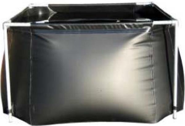 Gerüstbehälter aus PVC mit Stützgerüst aus verzinktem Stahlrohr 1 inkl. Packtasche und Reparatursatz, ohne ArmaturGerüstbehälter mit flexiblem Einhängebehälter aus PES/PVC: