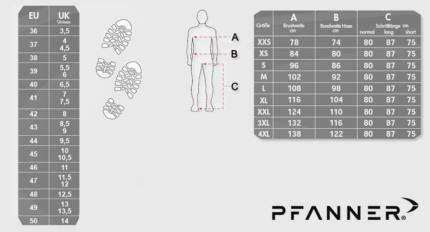 Größen: S: 38-40 | M: 41-43 | L: 44-46 | XL: 47-49